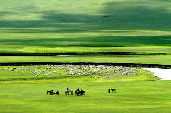 甲:看,那一片片绿草如茵,那是呼伦贝尔的胸怀,宽广而深邃,那一片片白云飘荡,那是呼伦贝尔的灵魂,自由而高远。